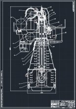 Чертеж судового двухтактного крейцкопфного двигателя MAN B&W 5S50MC, вместе со спецификацией