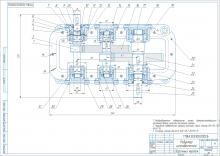 цилиндрический редуктор с чертежами зубчатого колеса, стакана и вала