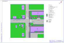 Масштабный план перекрёстка, цветная графика условных обозначений, с расшифровкой дорожных знаков, разметки и светофоров