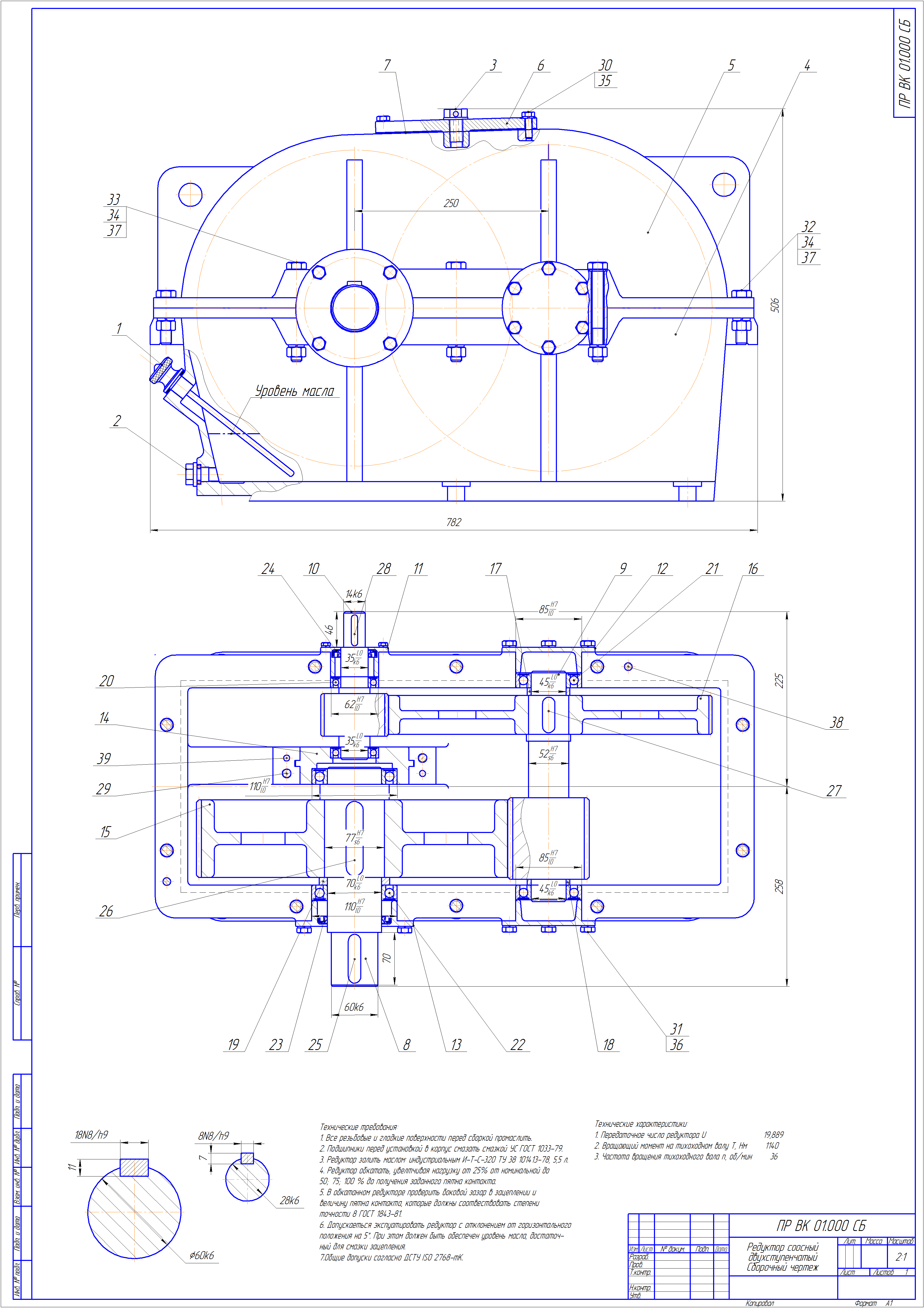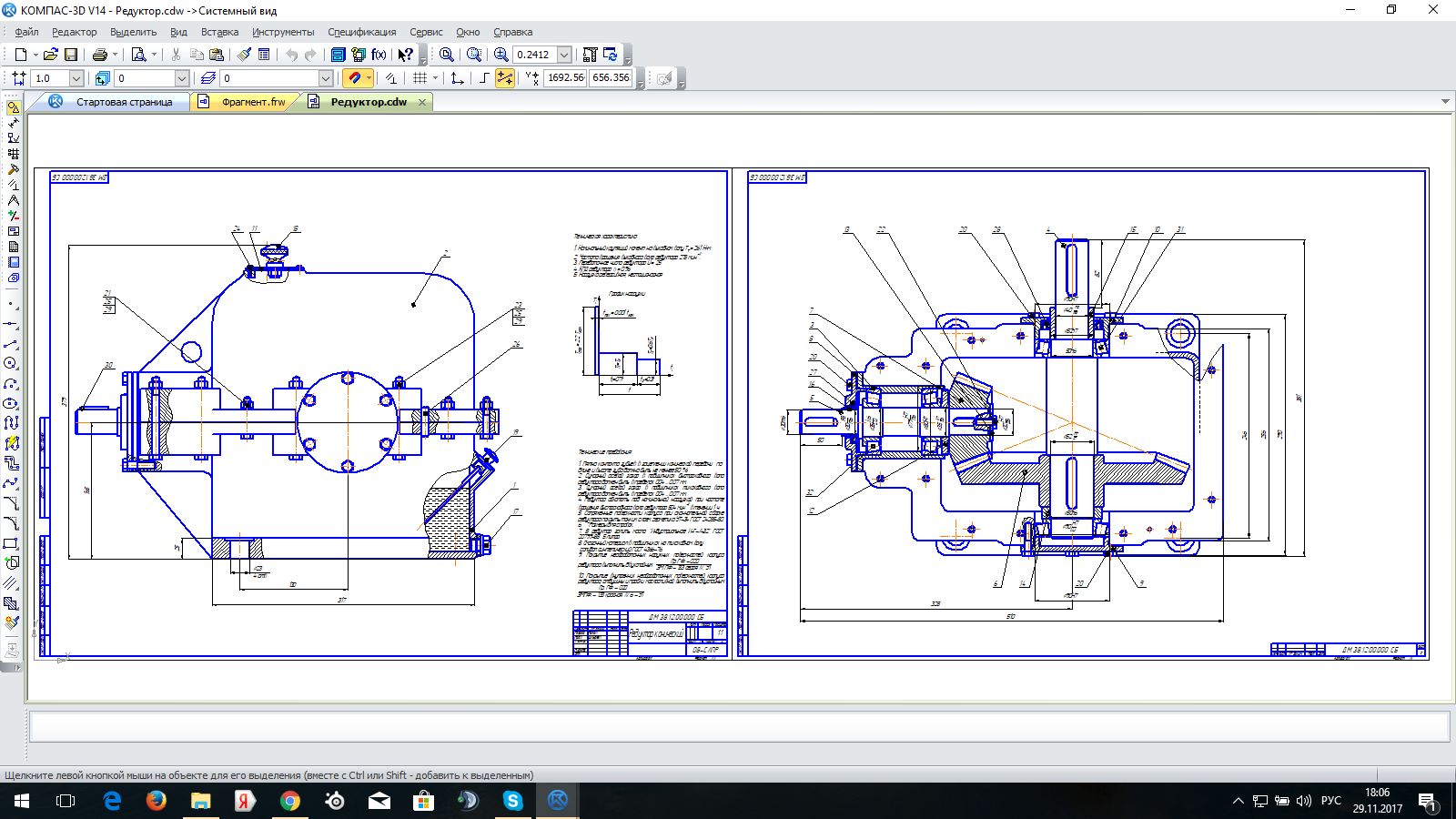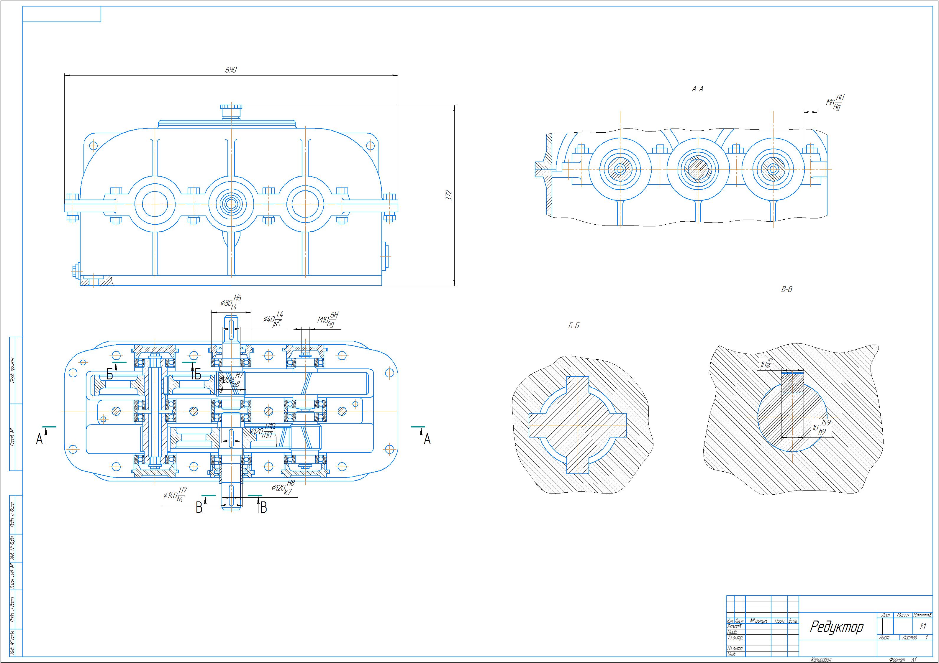 Редуктор соосный двухступенчатый Сборочный чертеж