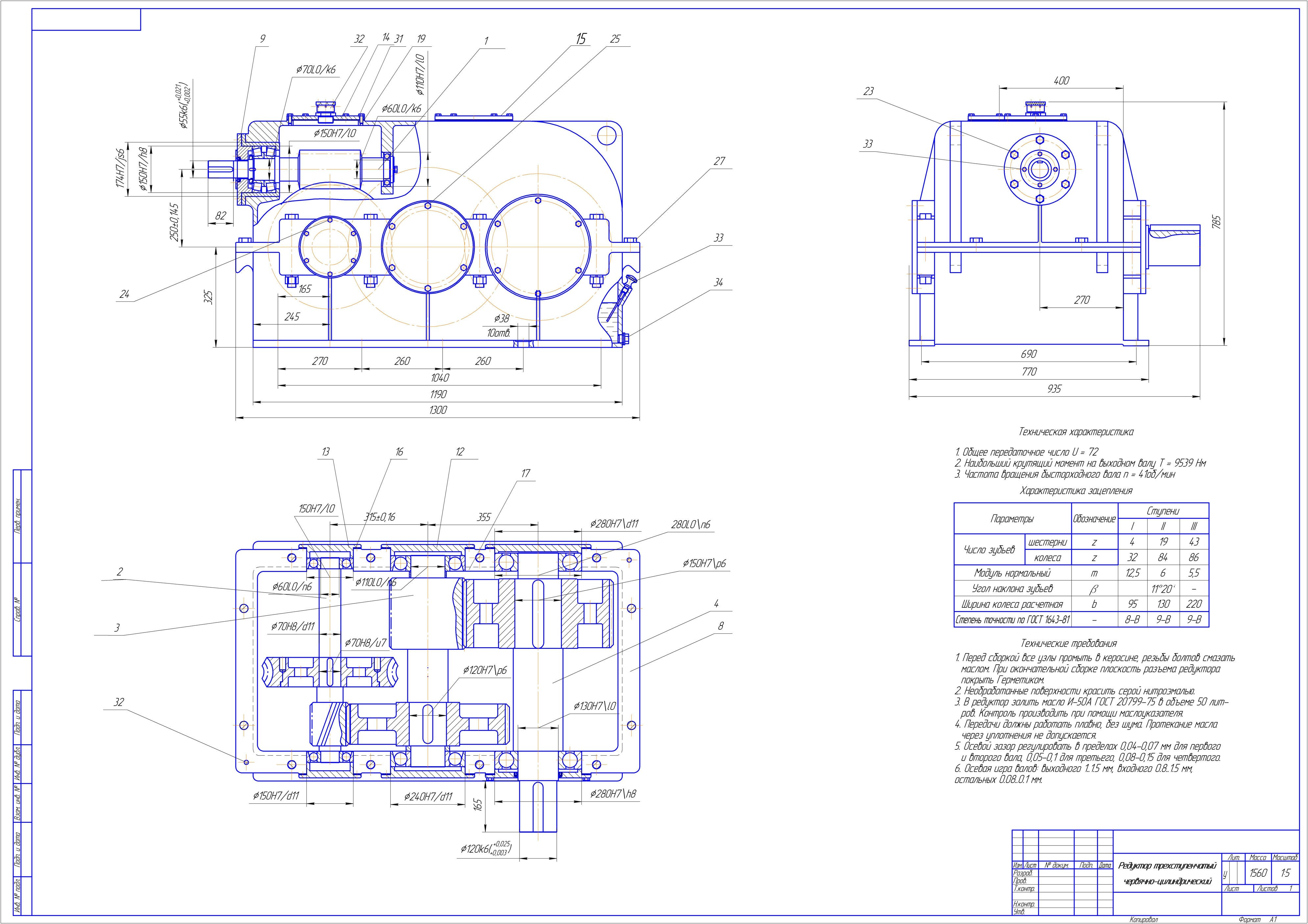 о чертеж общего вида 2-х ступенчатого цилиндрического редуктора