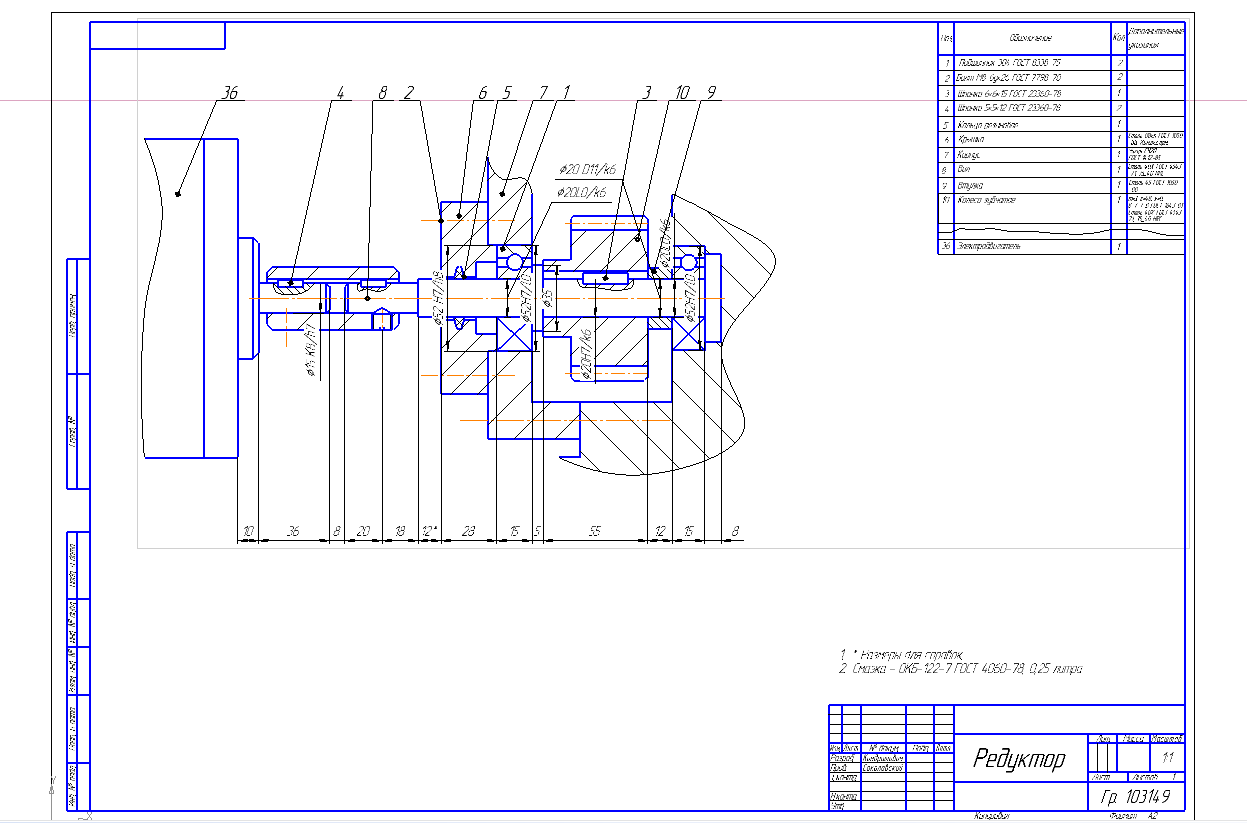 Редуктор цилиндрический одноступенчатый Сборочный чертеж