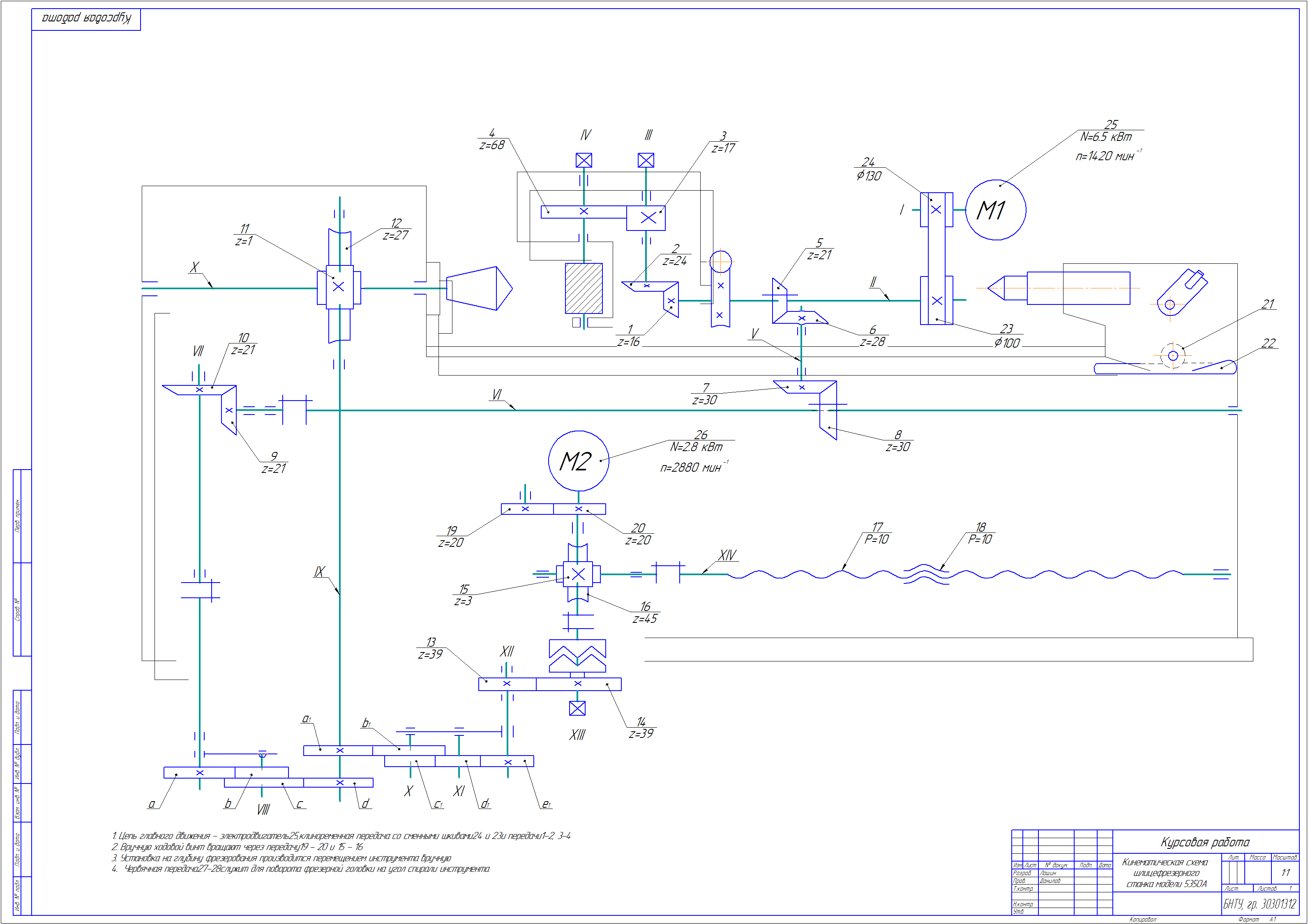 Курсовая работа на тему "Структурный анализ кинематической схемы и кинематическая настройка шлицефрезерного полуавтомата модели 5350А на обработку заданной поверхности"