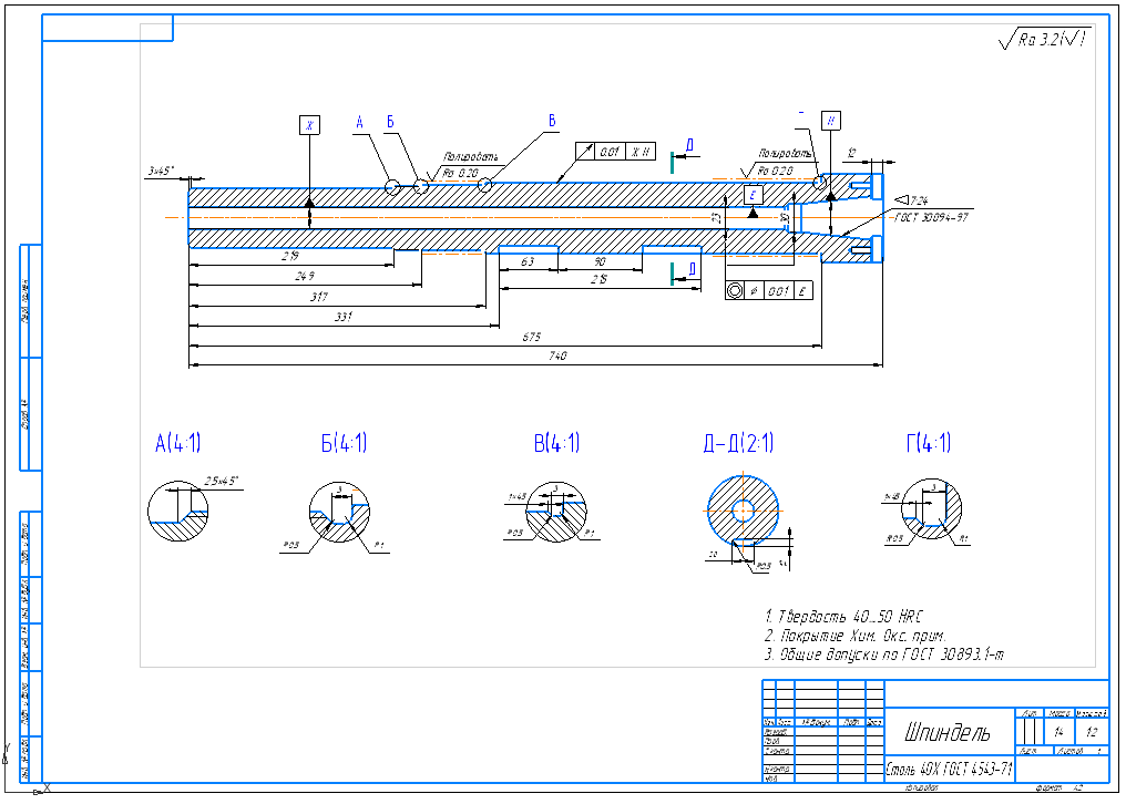 о Чертеж сборочный шпинделя горизонтально-фрезерного станка, шпиндель, спецификация