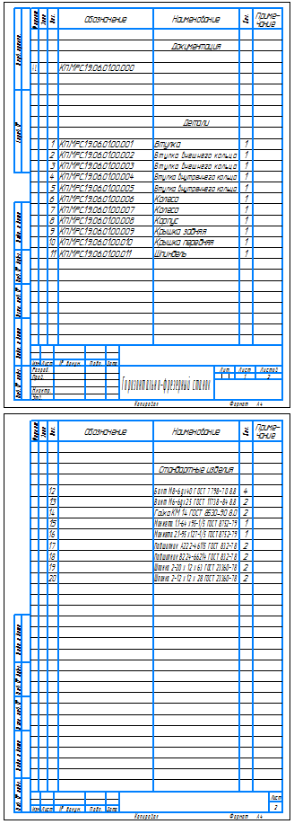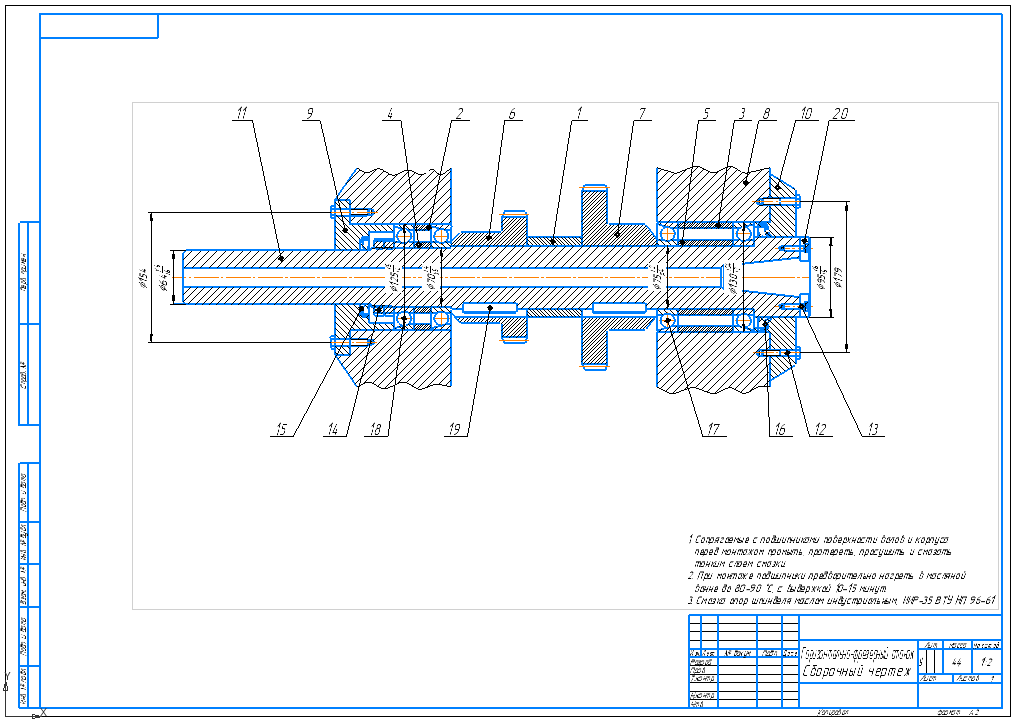 Чертеж сборочный шпинделя горизонтально-фрезерного станка, шпиндель, спецификация