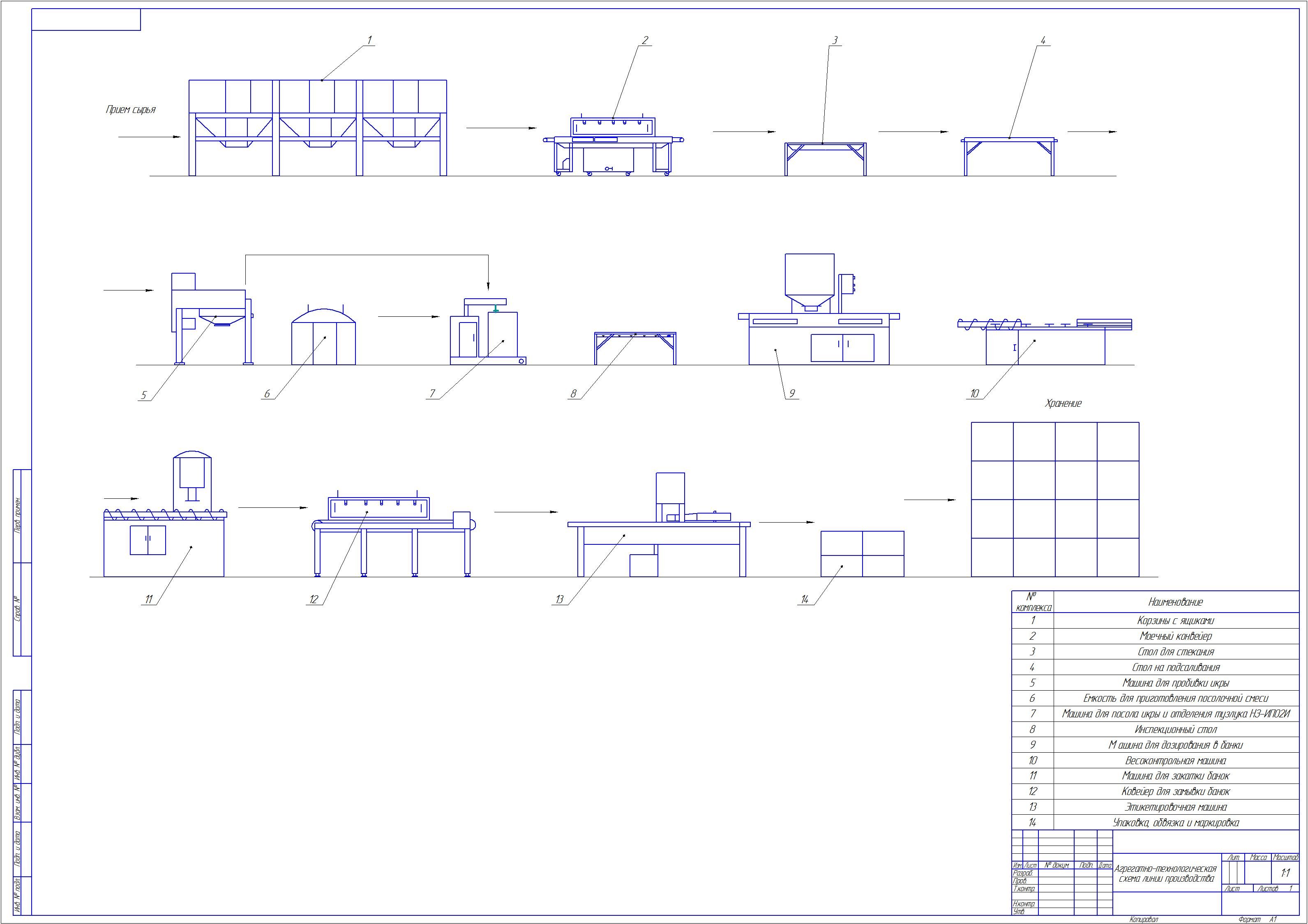 Агрегатно-технологическая схема линии производства