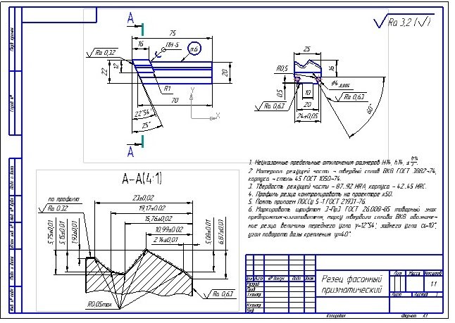 Резец фасонный призматический