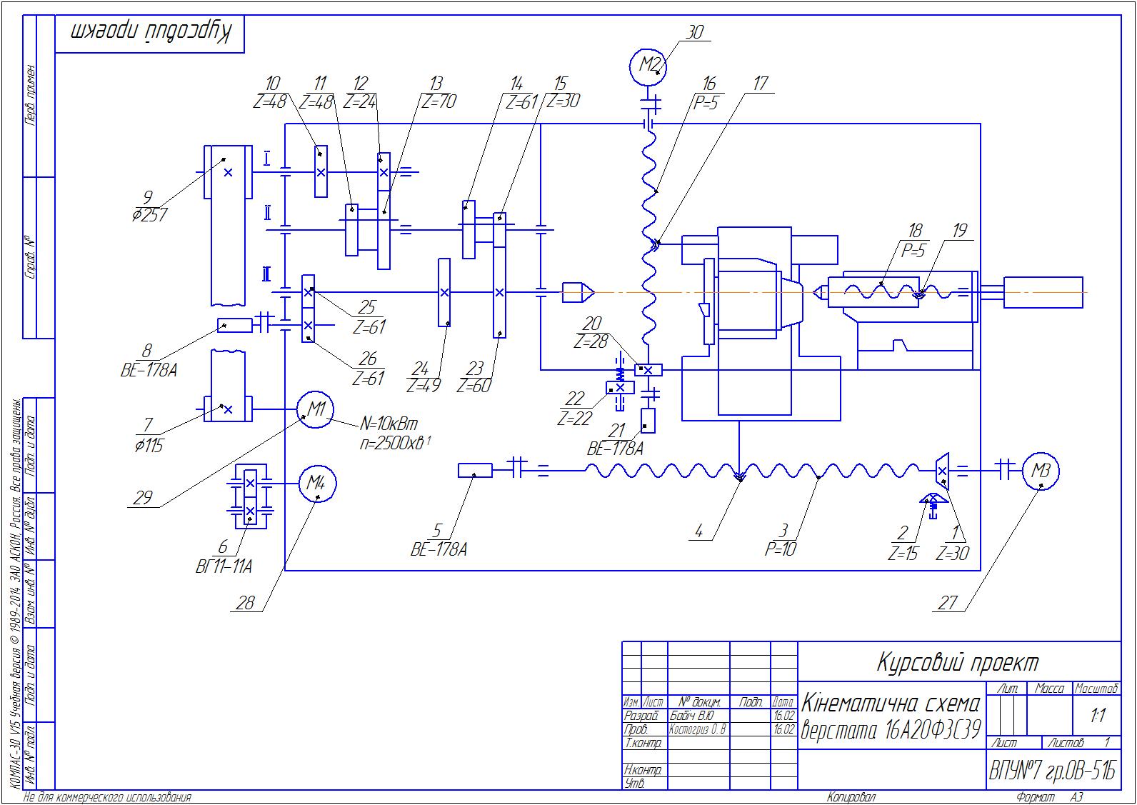 Кинематическая схема станка 16А20Ф3С39