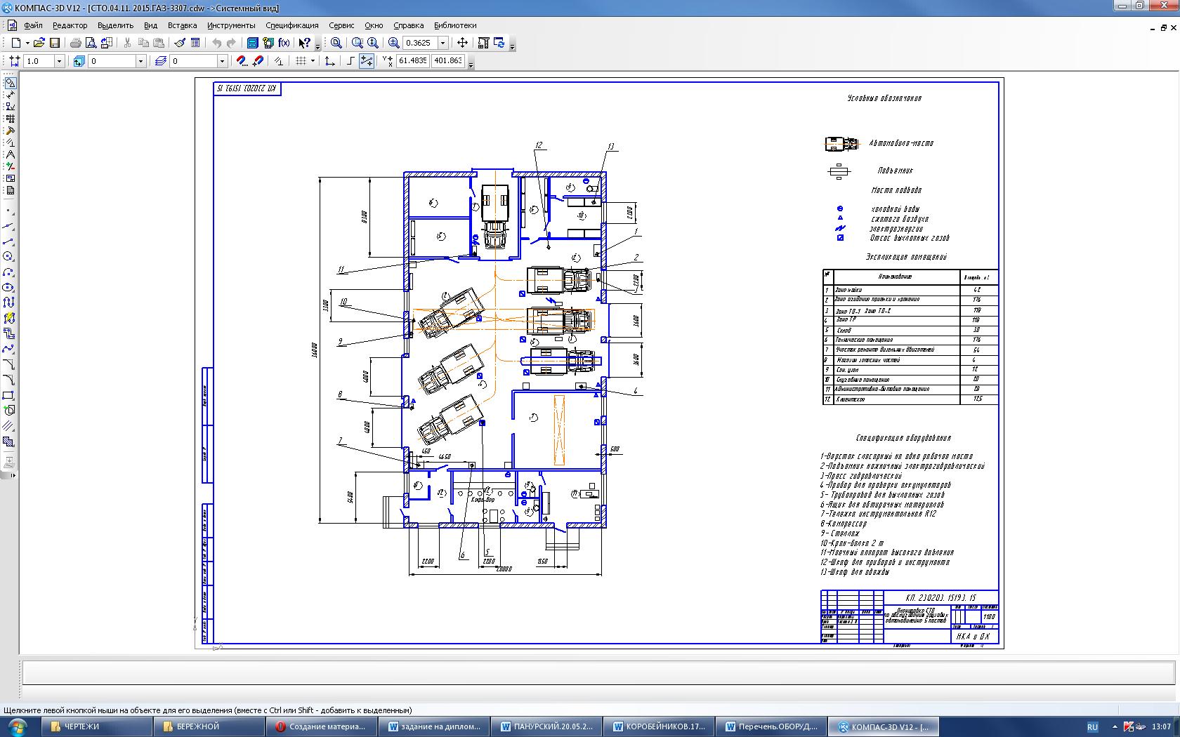 Планировка СТО на 3 поста + пост мойки+пост ЕО