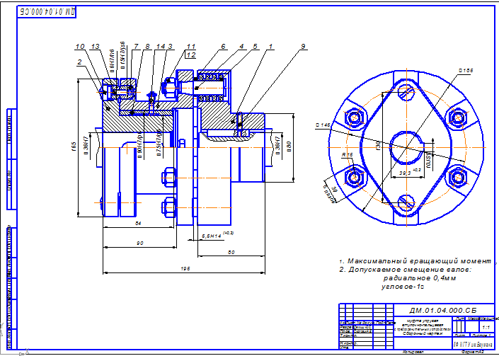 о муфта упругая втулочно-пальцевая с предохранительным устройством Сборочный чертеж