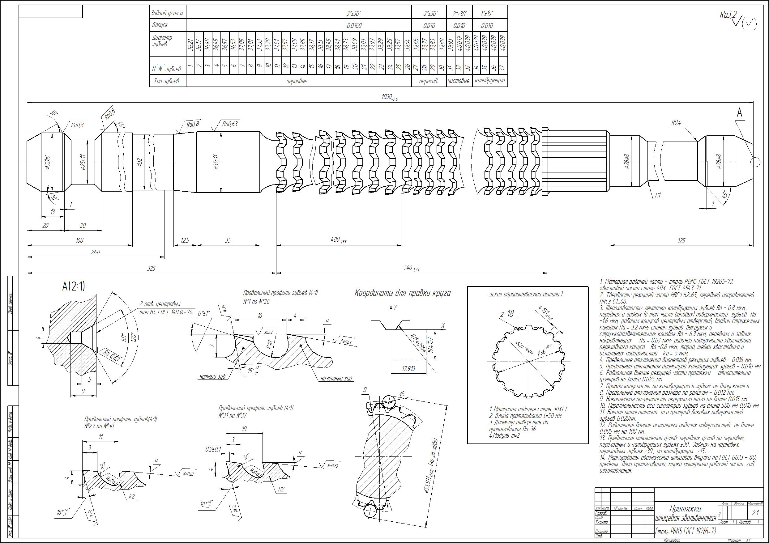 Протяжка шлицевая эвольвентная