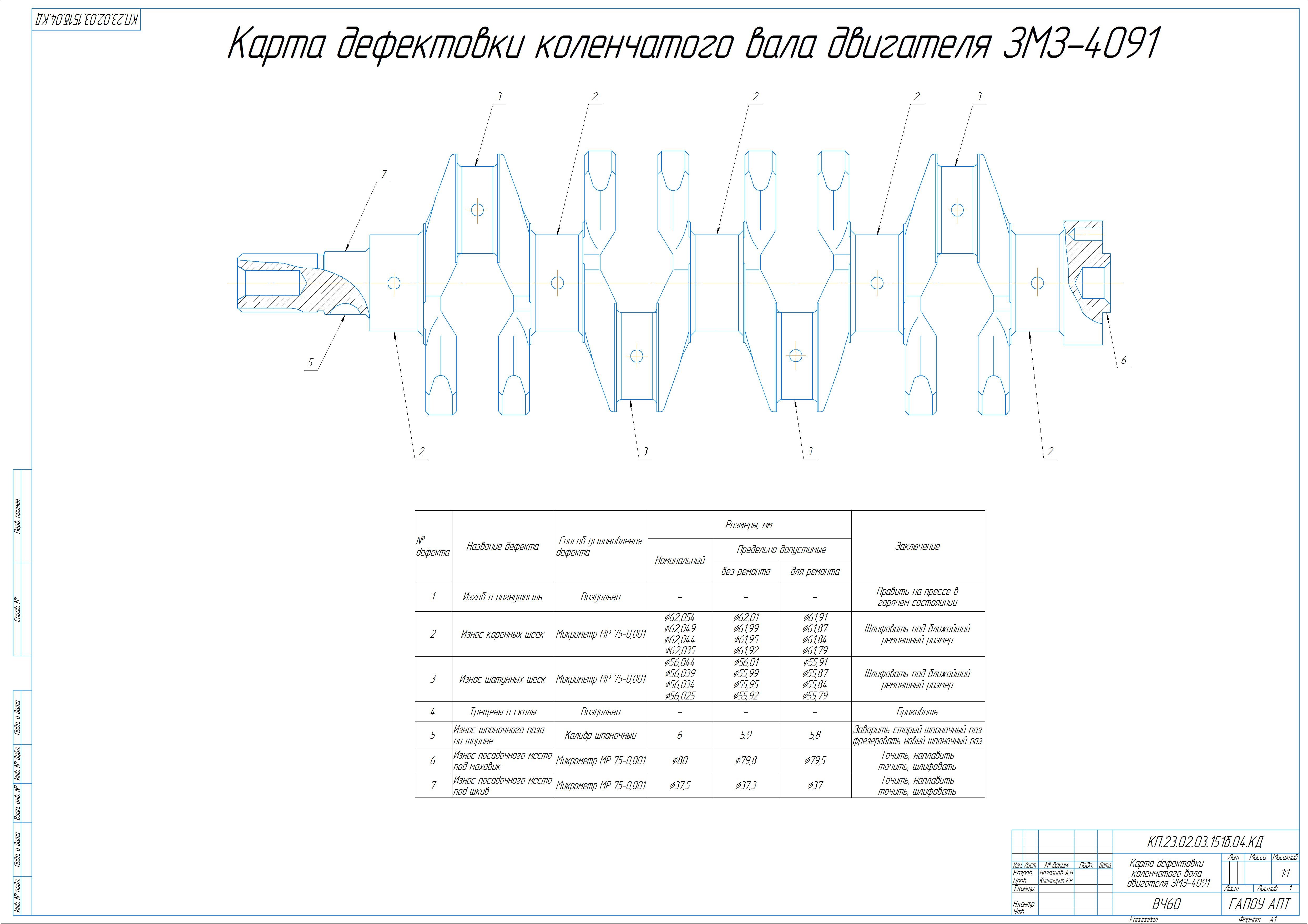 Карта дефектации коленчатого вала ЗМЗ-409