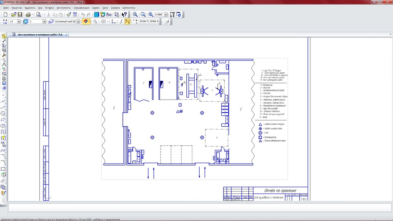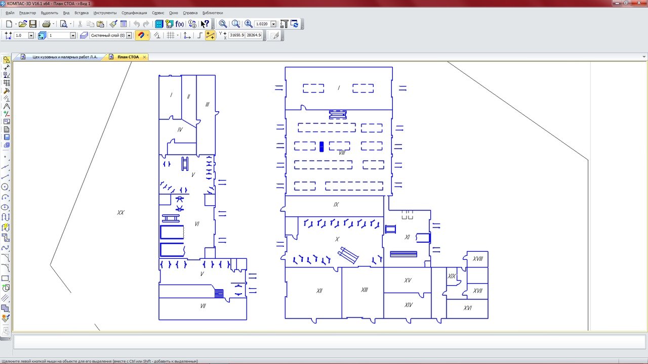 Чертеж цеха кузовных и малярных работ легковых автомобилей