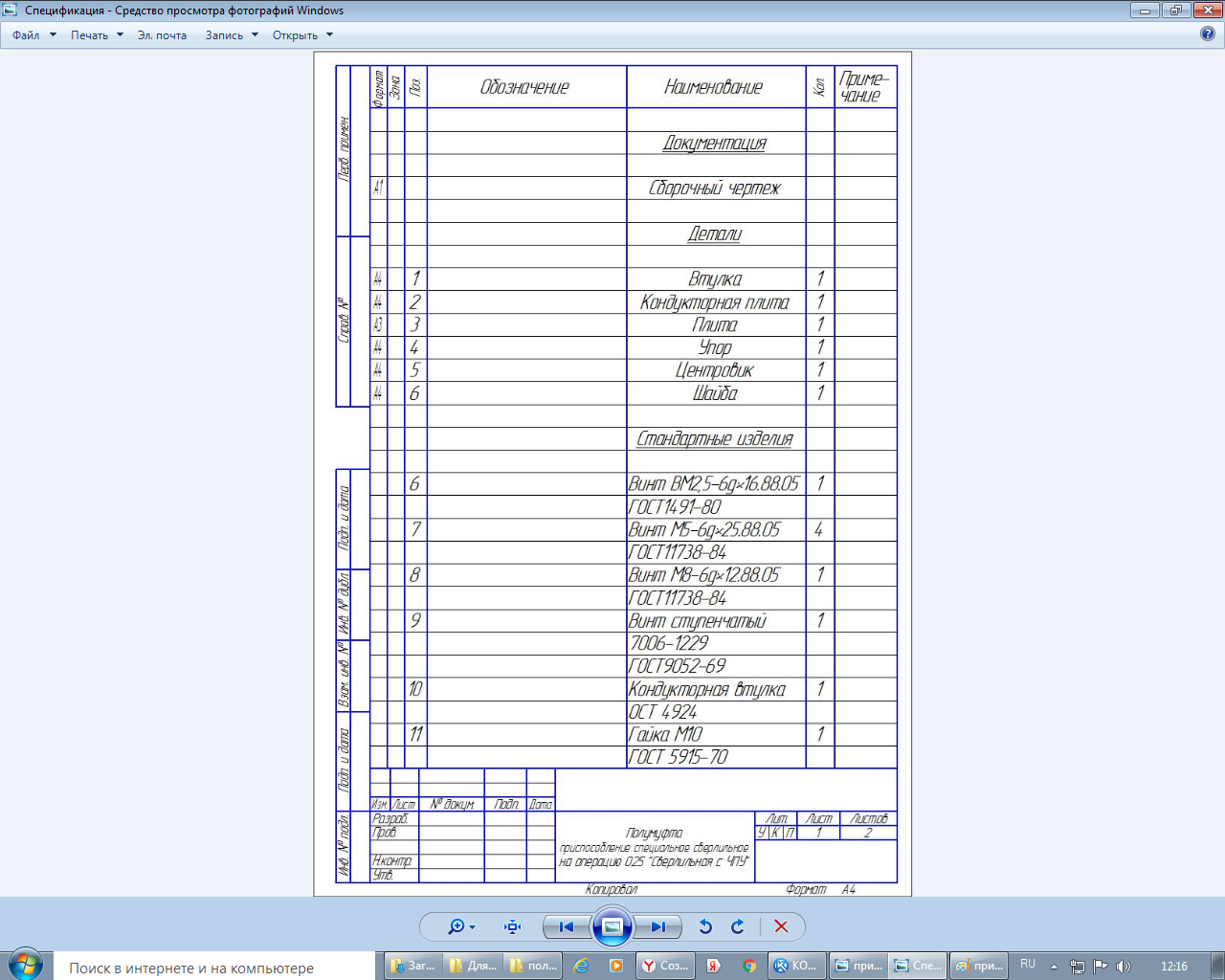 Приспособление для сверлильной операции