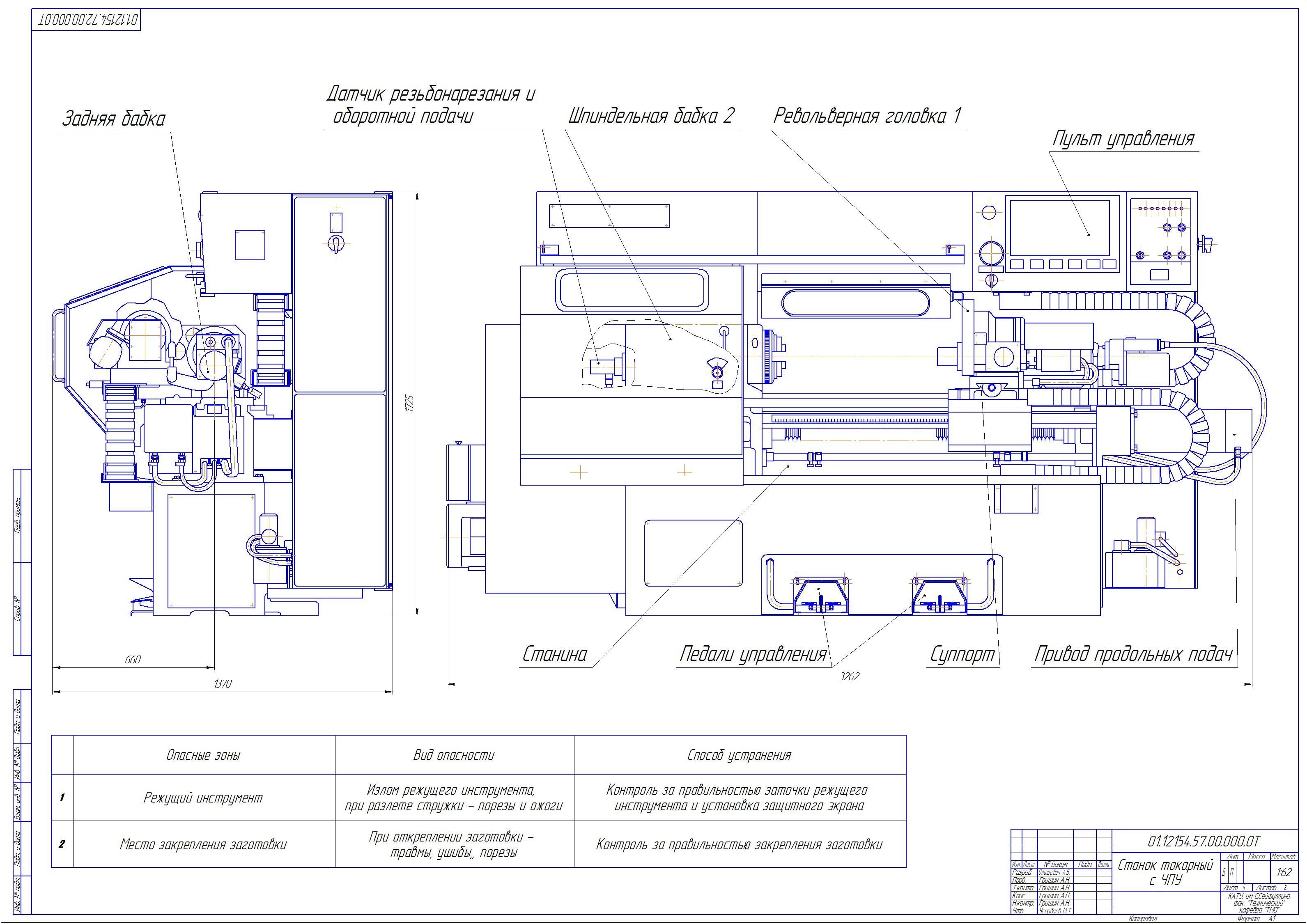 Чертеж Токарного станка с ЧПУ