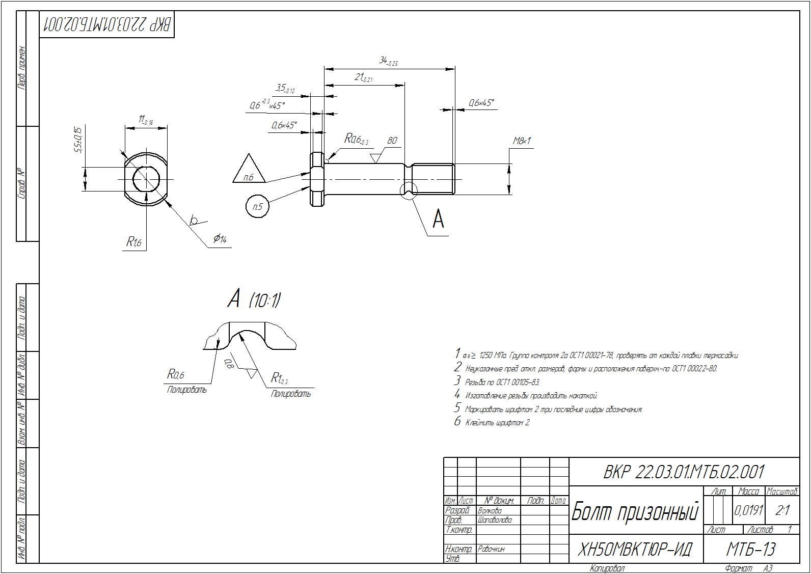 Призонный болт
