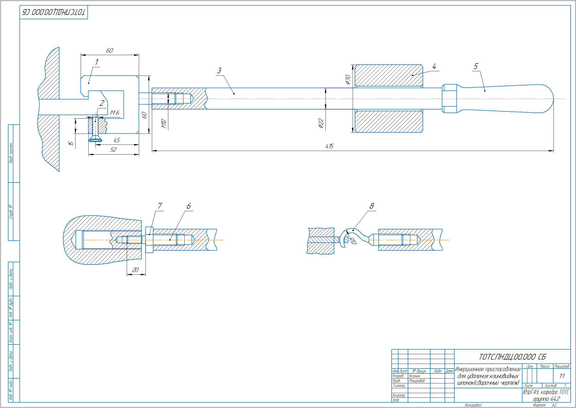 Инерционное приспособление для удаления клиновидных шпонок