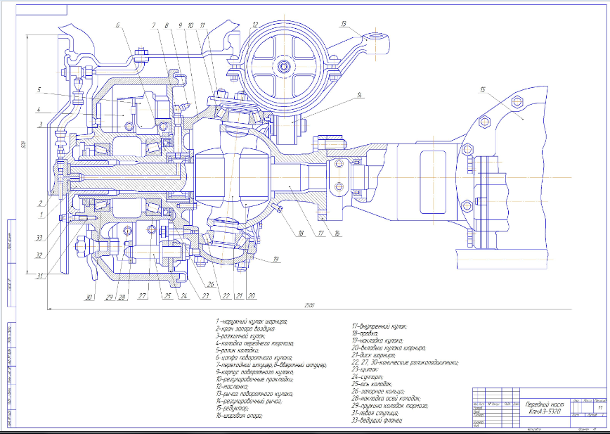 Сборный чертеж переднего моста автомобиля КамАЗ-5320