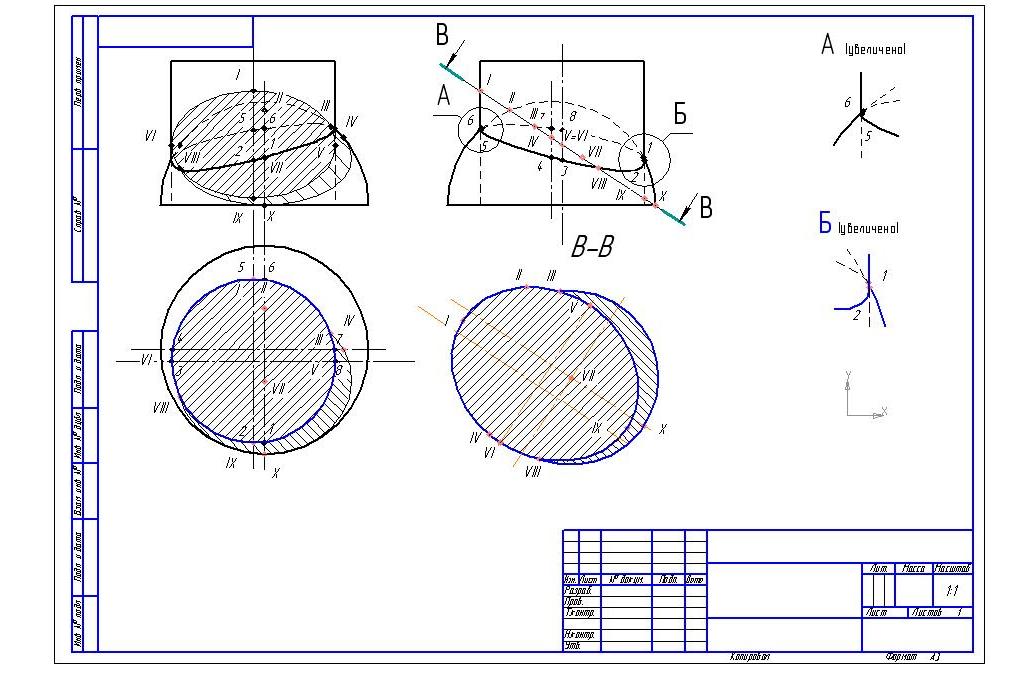 о Пересечение цилиндра и сферы+сечение плоскостью
