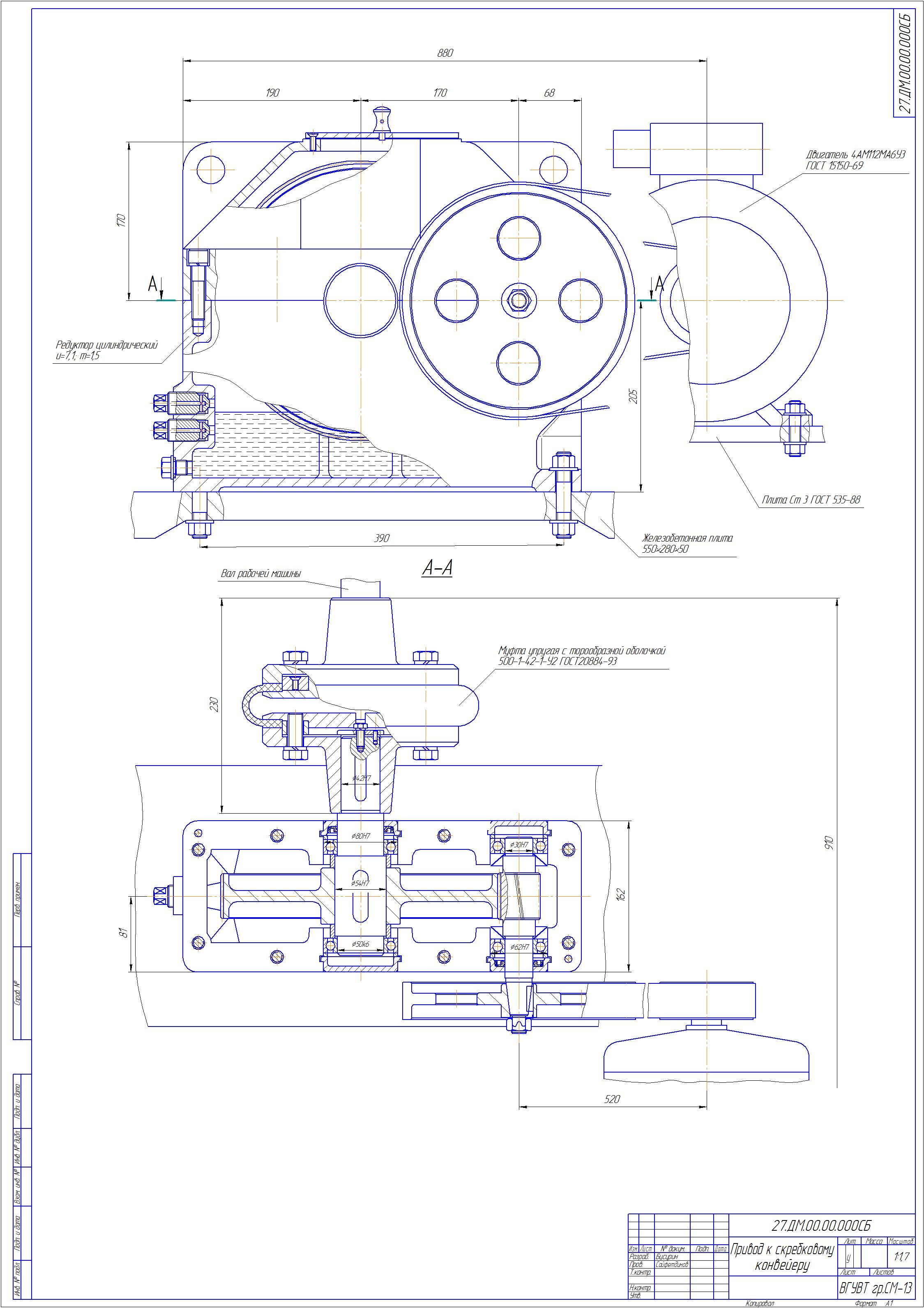 о Редуктор цилиндрический-привод к скребковому конвееру
