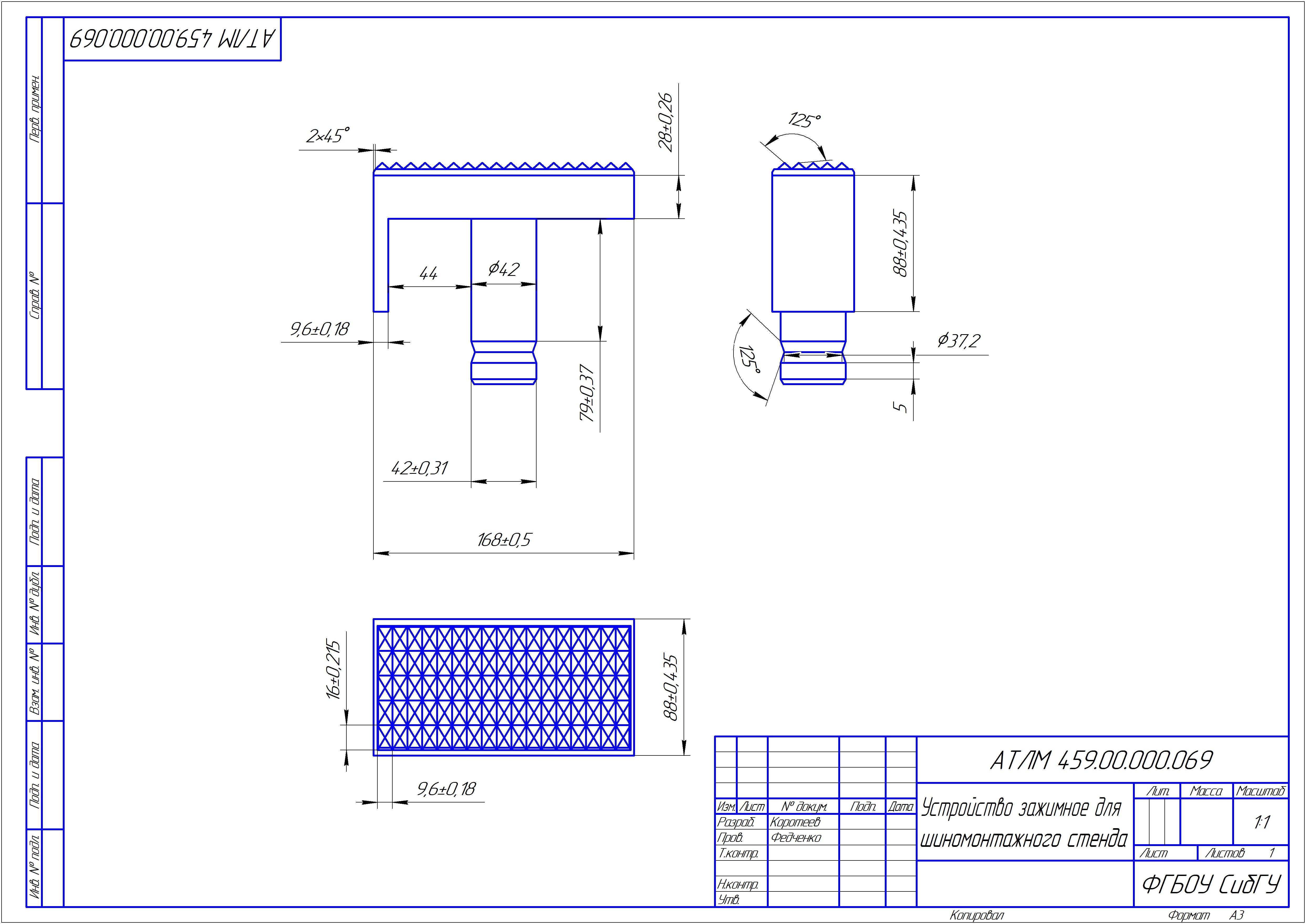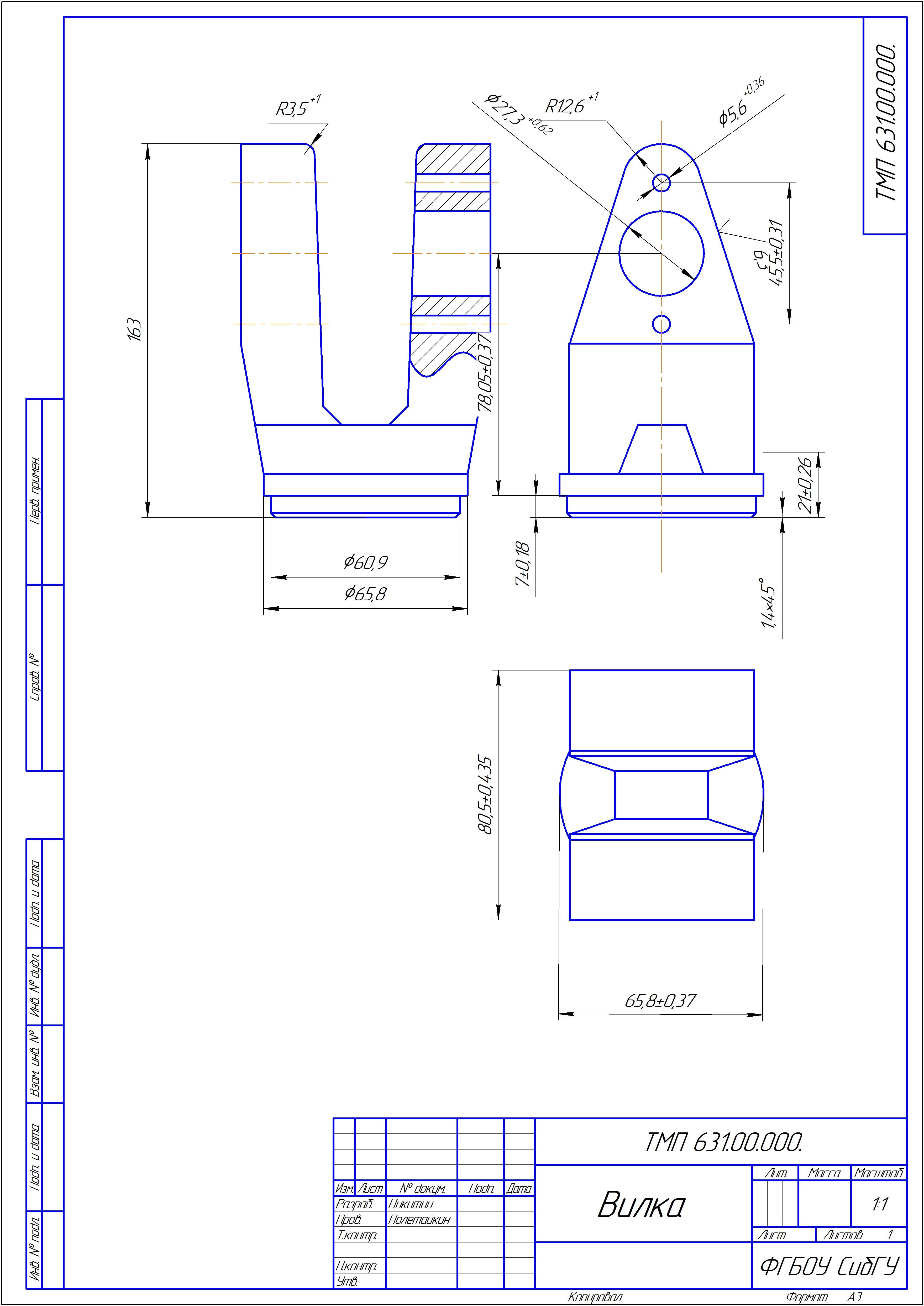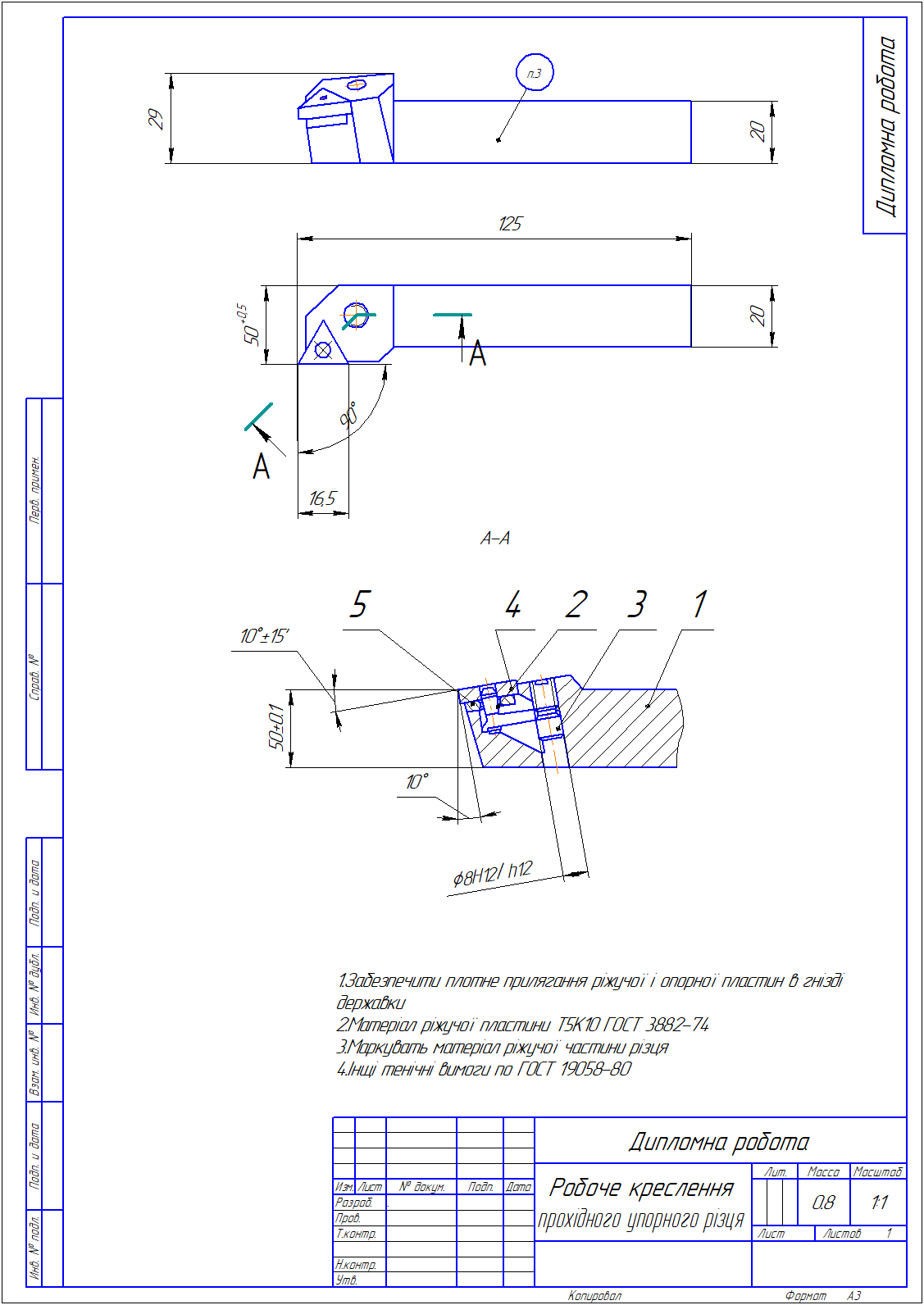 Рабочий чертёж проходного упорного резца