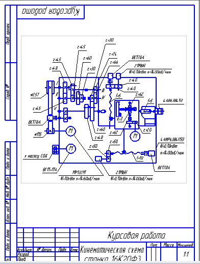 Кинематическая схема станка 16К20Ф3