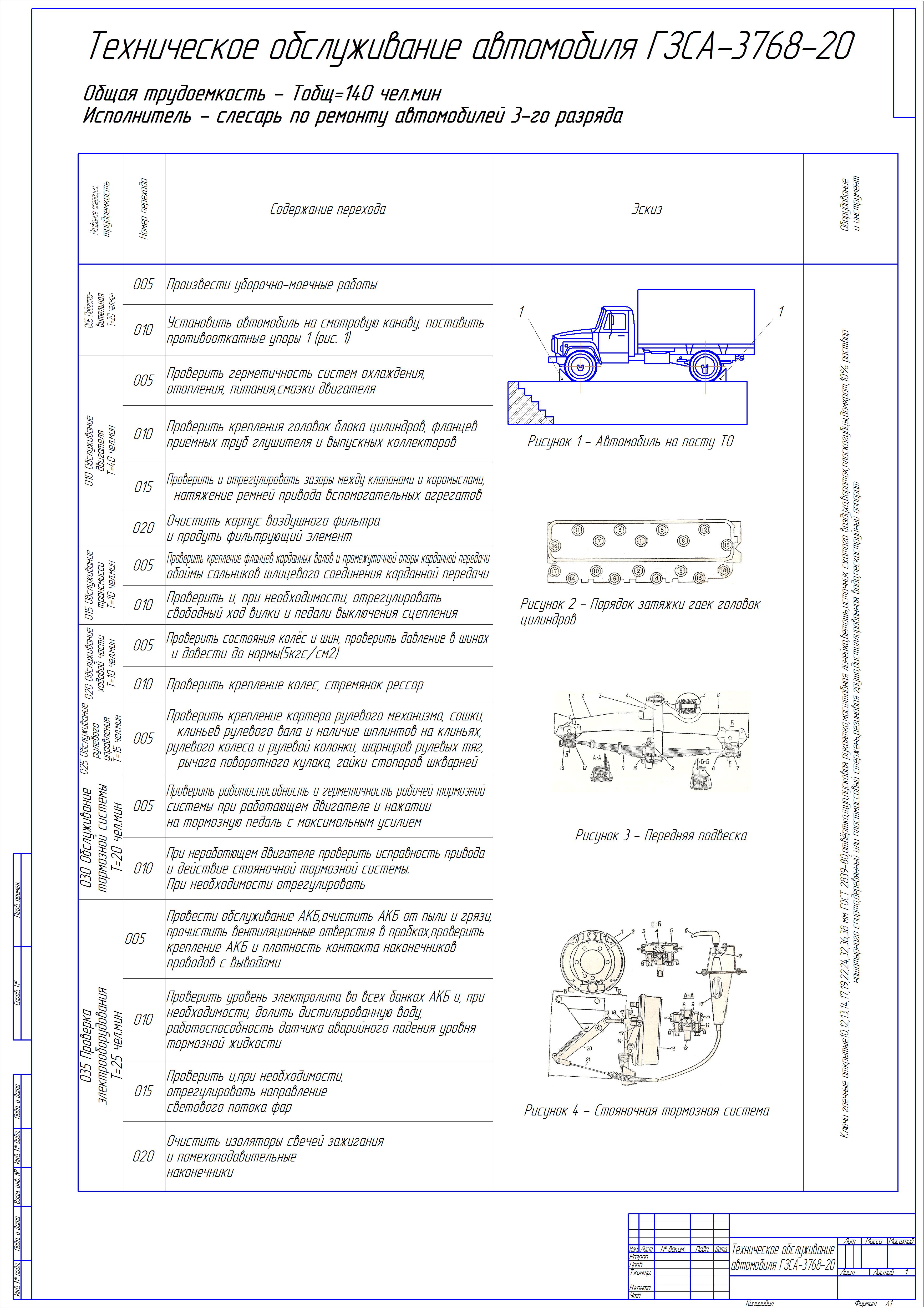 Технологическая карта ТО-1 автомобиля ГЗСА-3768-20