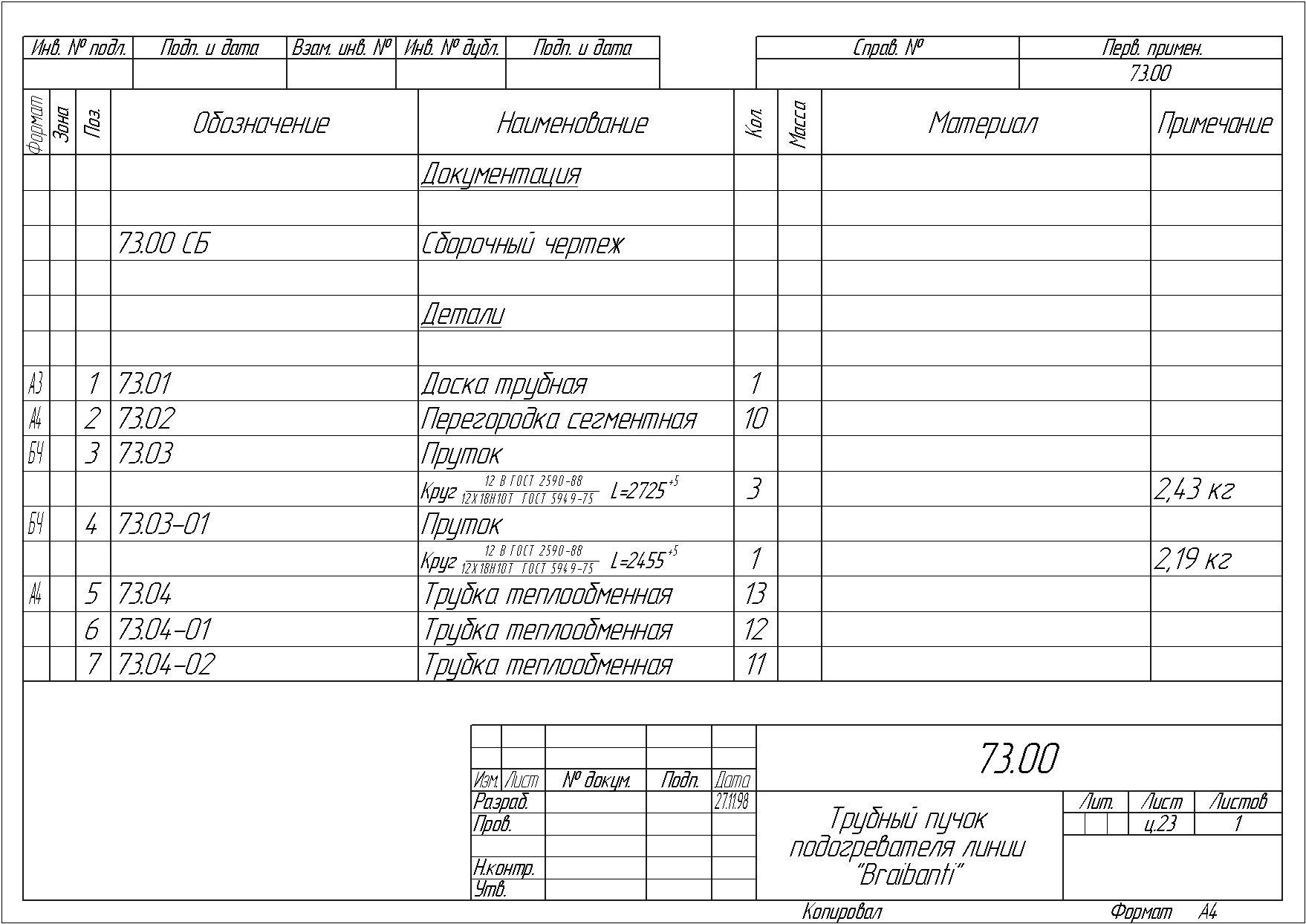 о Трубный пучок подогревателя линии "Braibanti"