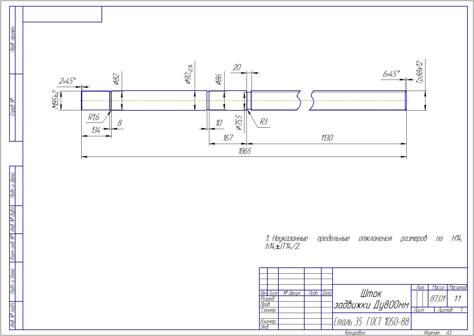 Шток задвижки Ду 800 мм