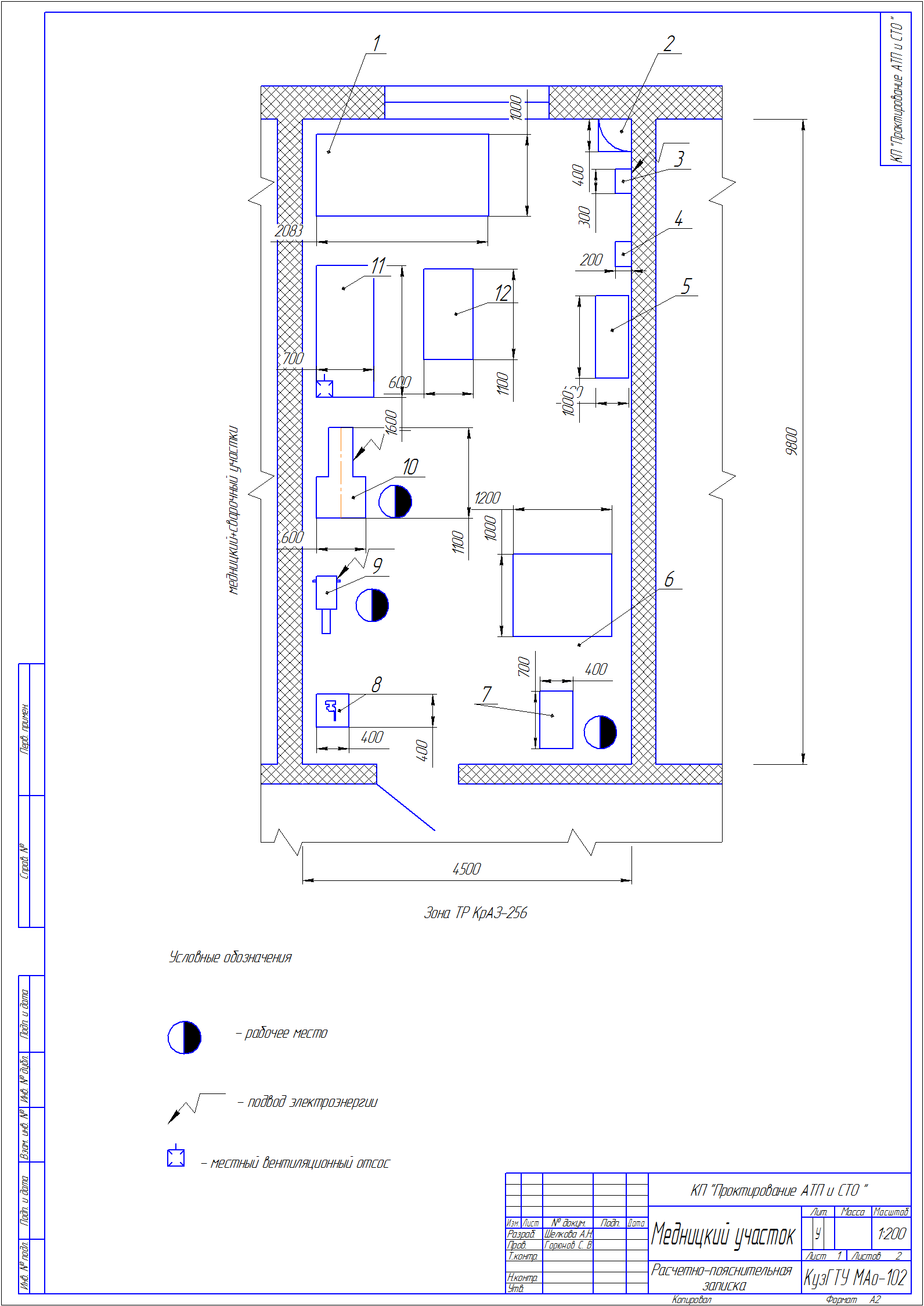 План участка по ремонту топливной аппаратуры