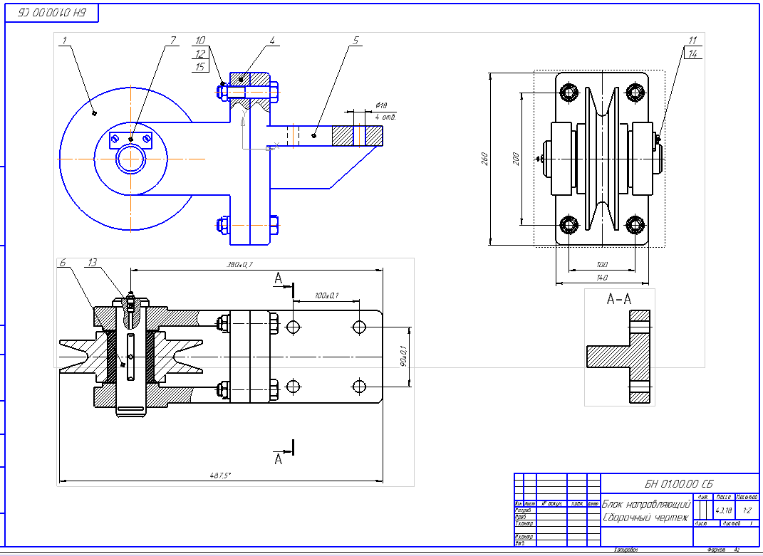Блок направляющий Сборочный чертеж