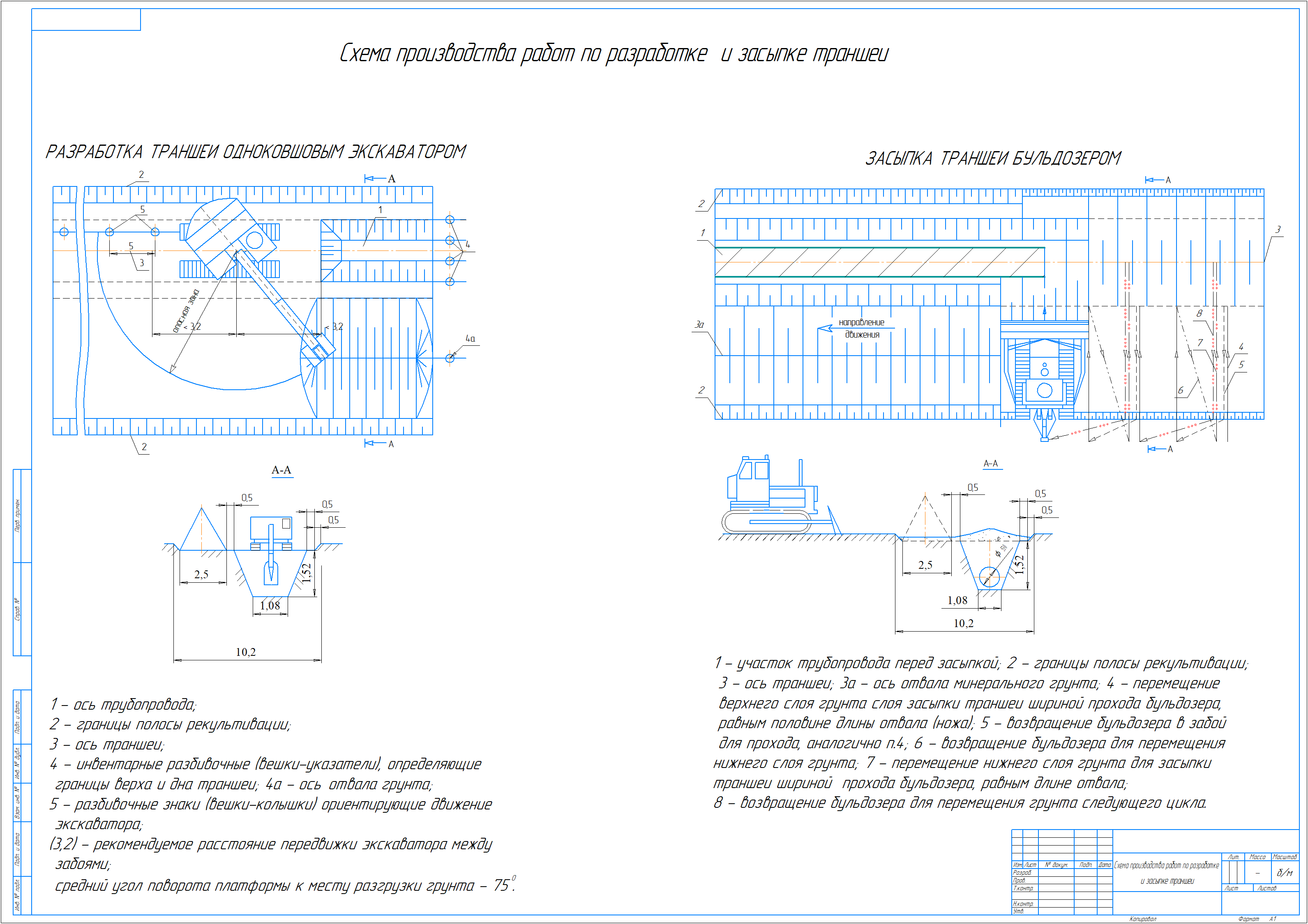 Схема производства работ по разработке и засыпке траншеи