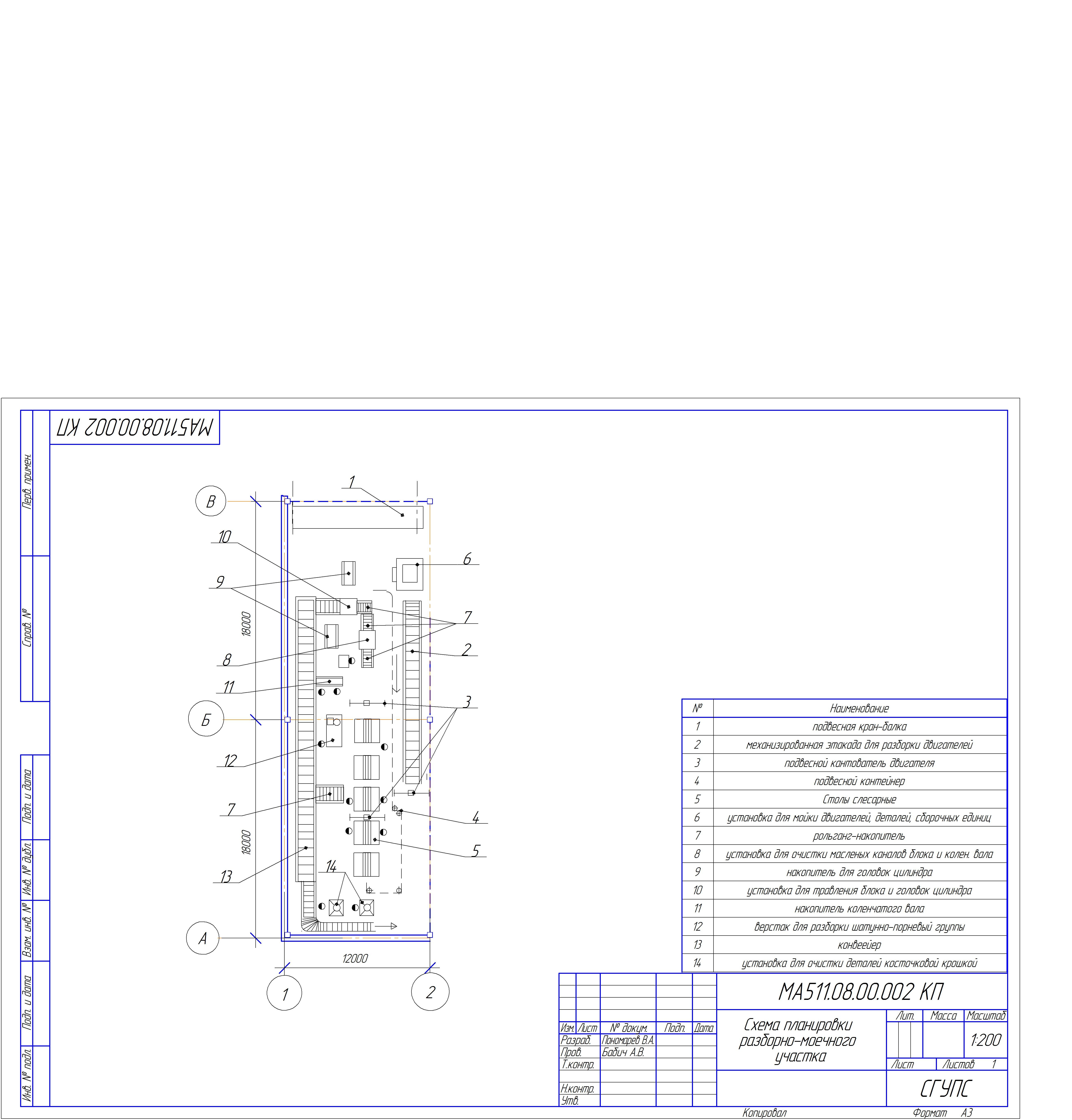 Компоновочный план участка по ремонту агрегатов и узлов трактора МТЗ-82