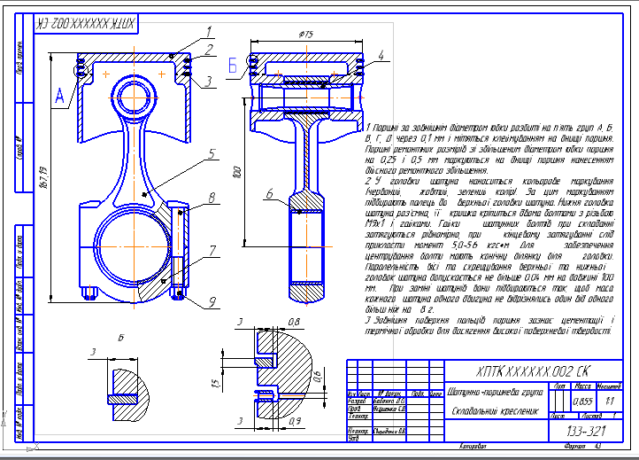 Сборочный чертёж шатунно-поршневой группы МеМЗ-245