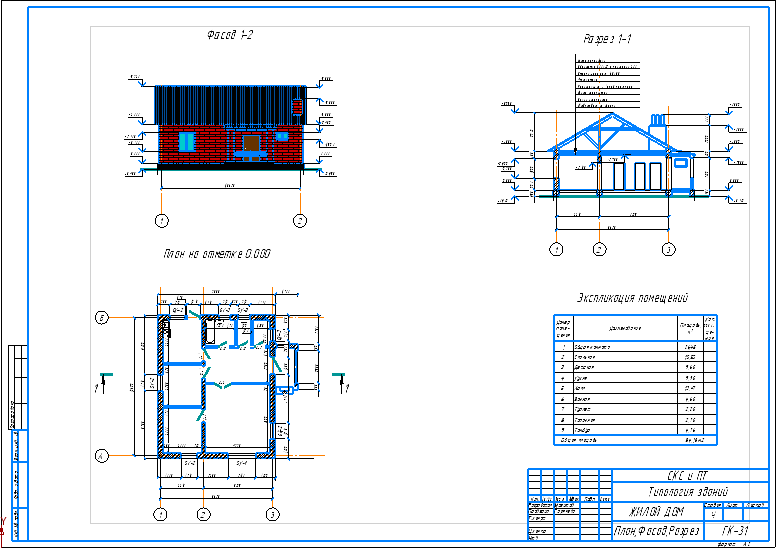 о План, Фасад, Разрез. Жилого дома.