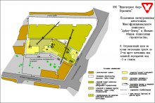 Подземная пятиуровневая автостоянка многофункционального комплекса "Альфа-Арбат-Центр" в Москве. Общая технология строительства. Ситуационный план во время экскавации грунта на 2-м ярусе котлована под защитой перекрытия над -2-м этажом