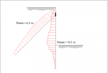 Эпюра N в сваях ограждения и крепления. Строительство многоэтажного гаража с автомагазином по ул. Мытной, вл. 66 (г. Москва)